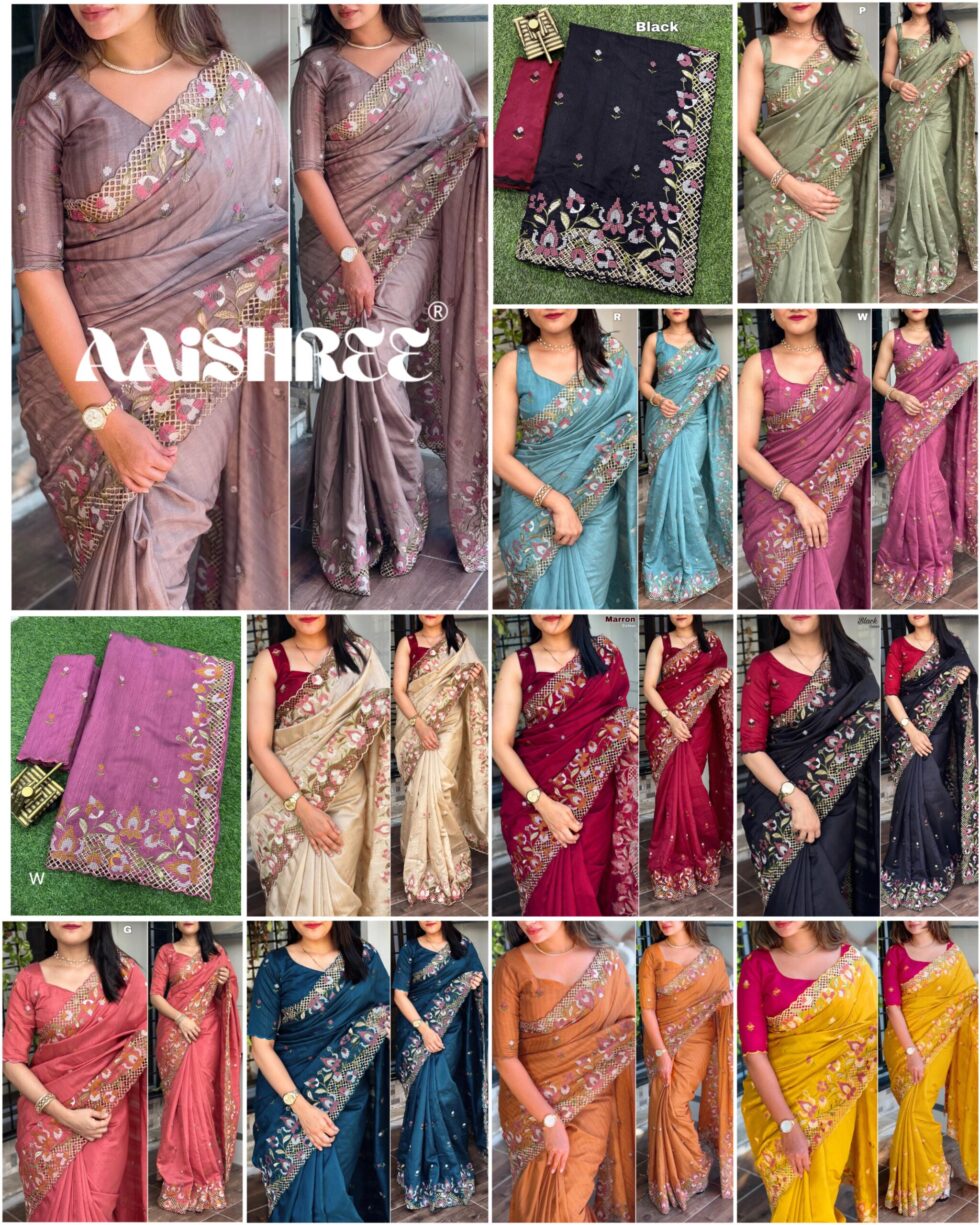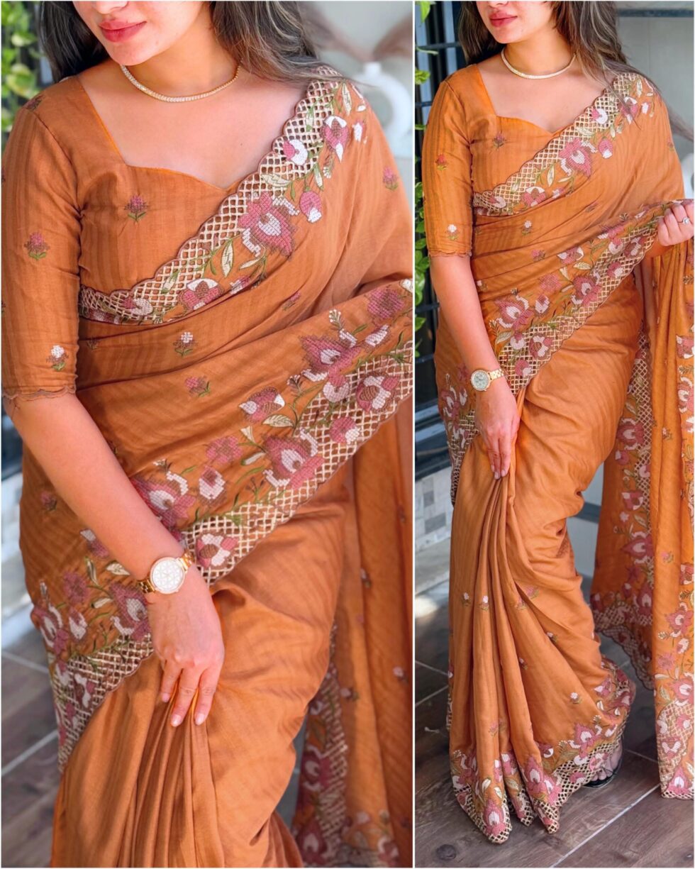 Embrace your femininity & make a statement with our stunning cut work visca slub silk saree..